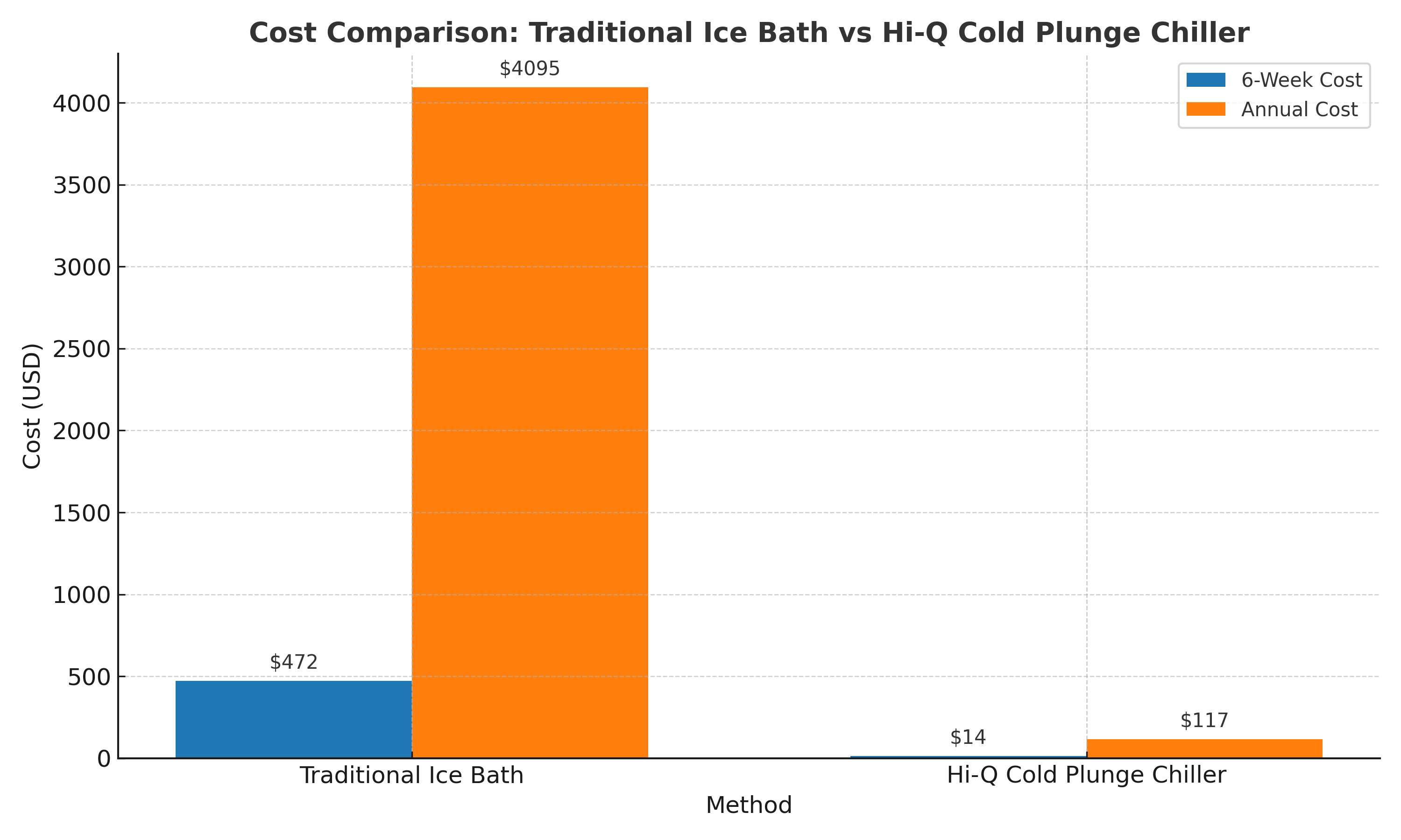 ข้อได้เปรียบด้านเทคโนโลยี:ชิลเลอร์ Plunge Cold Plunge ที่ทันสมัยเช่นHi-Q Cold Bath Chiller, เสนอการควบคุมอุณหภูมิที่แม่นยำในช่วงการรักษานี้ ซึ่งแตกต่างจากอ่างน้ำแข็งแบบดั้งเดิมที่ผันผวน± 3 ° C ระบบคู่คอมเพรสเซอร์ของ Hi-Q รักษาไว้± 0.5 ° C ความแม่นยำ-วิพากษ์วิจารณ์สำหรับการจำลองการสัมผัสกับความเย็นเกรดทางคลินิกที่บ้าน
